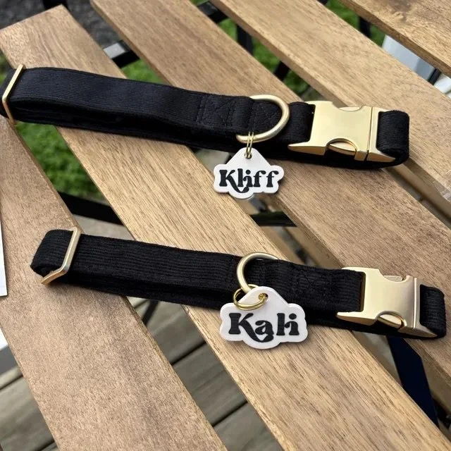 Love these tags so much!! They are so cute on our dogs. I love that they stand out & you can actually read their names from a distance & it’s great that they are waterproof.
